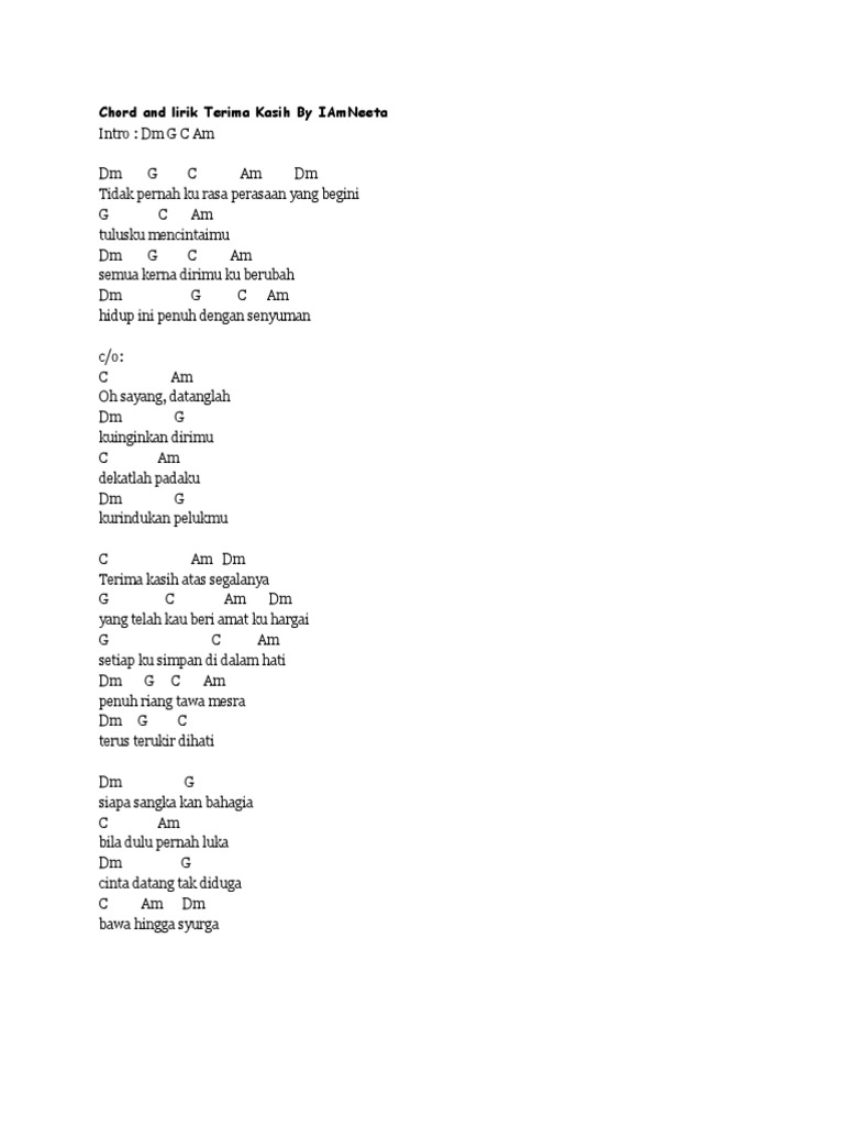 Bitobeyto Terima Kasih Atas Segalanya Lirik Acordes Chordify